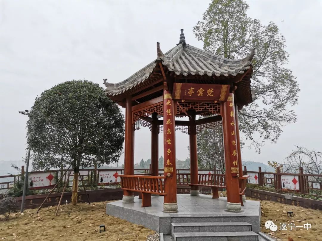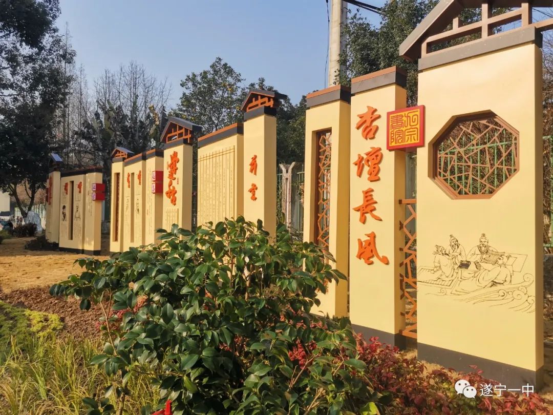 遂寧一中高中部毗鄰遂寧廣德寺風(fēng)景區(qū),遠(yuǎn)離鬧市,地理位置得天獨(dú)厚,自然環(huán)境優(yōu)美怡人,在市委、市政府的關(guān)懷下,經(jīng)過(guò)十余年的建設(shè)和打造,校區(qū)的辦學(xué)環(huán)境、辦學(xué)條件得到了根本性好轉(zhuǎn)。如今,遂寧一中高中部校園綠樹(shù)成蔭,空氣清新,環(huán)境優(yōu)美,是莘莘學(xué)子學(xué)習(xí)、生活的讀書(shū)勝地。依托書(shū)院文化和學(xué)校的歷史底蘊(yùn)打造的校園文化景觀13處,初中部文源廣場(chǎng)、文廟廣場(chǎng)和“古雪苑”,高中部的“一廊三園”不僅美化了校園環(huán)境,更達(dá)到了環(huán)境育人的目的。