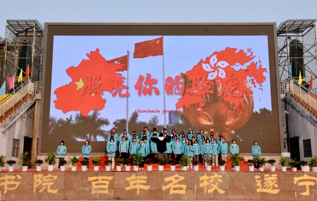 師生們懷著崇高的敬意仰視著國(guó)旗