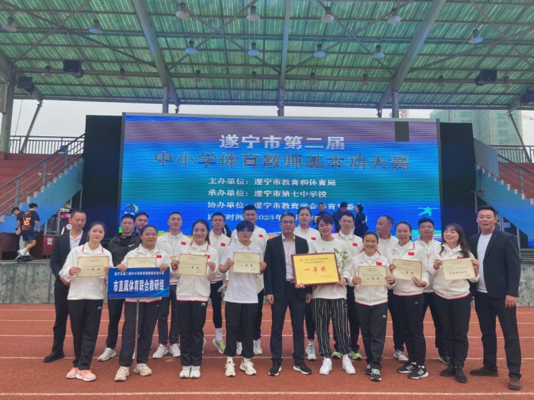 2023年10月23日至25日,由遂寧市教育和體育局主辦的“遂寧市第二屆中小學體育教師基本功大賽”圓滿結束,遂寧一中楊鵬老師代表遂寧市直屬學校代表隊參賽,并在比賽中表現(xiàn)優(yōu)異,榮獲一等獎,所在的市直屬學校代表隊也榮獲團體市一等獎。